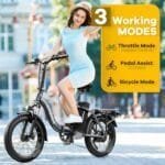 【3 RIDING MODES】Electric bike provides 3 riding modes: Pure electric mode, pedal-assist mode, classic bike mode.Max Speed: 28+MPH by pedal; 20 MPH by throttle; Range: 25 to 50+ Miles by Pedal; 35+ Miles by Throttle.(The calculation based on rider's weight of 75kg. Range varies according to road condition, weather, rider's weight etc.)