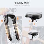 Enhanced Comfort and Versatility – Experience a smoother ride on rough terrains with the full suspension system that effectively absorbs shocks. The 20×4 inch puncture-resistant fat tires, made of low-pressure super-elastic rubber, ensure stability and comfort on any terrain.