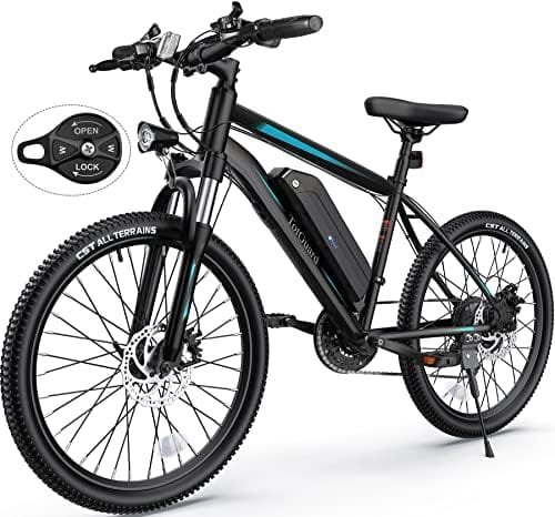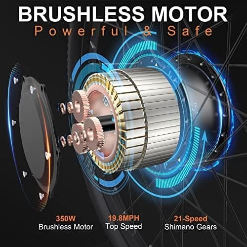 POWERFUL MOTOR&LITHIUM BATTERY: The electric bike for adults adopts a 350W high-speed motor, producing a top speed of up to 19.8MPH. With a 36V 374.4AH removable IPX5 waterproof Lithium-Ion battery, fully charged in 5 hours, this ebike is capable to achieve 28-30 miles in full electric mode and 50-60 miles in pure pedal assist mode (PAS mode). Your mountain adventure and daily commute will be faster and more cost-efficient.
