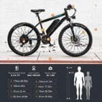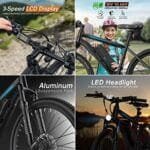 RELIABLE BIKE CONFIGURATION: 26″ ebike frame is made of high-quality Aluminum Alloy, lightweight, solid and durable. Shimano 21-speed transmission system will satisfy all your speed needs for uphill, downhill, acceleration, deceleration, and steady speed. This electric mountain bike also comes with an LED headlight, making you visible and safe at night. The intelligent LCD display keeps track of real-time speed, battery level, pedal assist level, mileage and other stats.